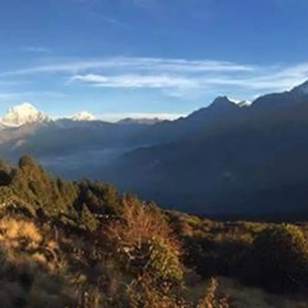 Annapurna vandring: Börja vandringsäventyret med en vandring upp på Poon Hill (3,190m/10,465ft över havet) där du kan se två av världens största berg; Annapurna (8,091m/ 26,545feet över havet) och Dhaulagiri (8,167m/26,794feet över havet).