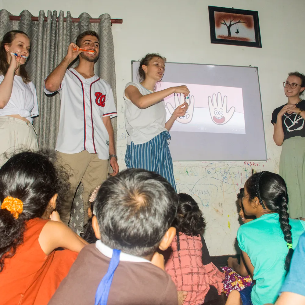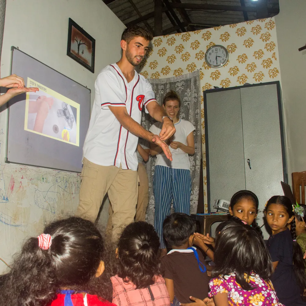 En annan möjlighet är att arbeta med ett av de samhällsprojekt som leds av vår partner i Sri Lanka. Här har du möjlighet att arbeta i skolor, bygdegårdar och andra institutioner en del av tiden, undervisa och berätta för lokalbefolkningen om vikten av god hygien, lära ut första hjälpen etc. Detta blir en mer social upplevelse, och du kommer att arbeta med barn och pensionärer. Alla ovanstående institutioner ligger inom 30 minuter från vårt volontärhus.