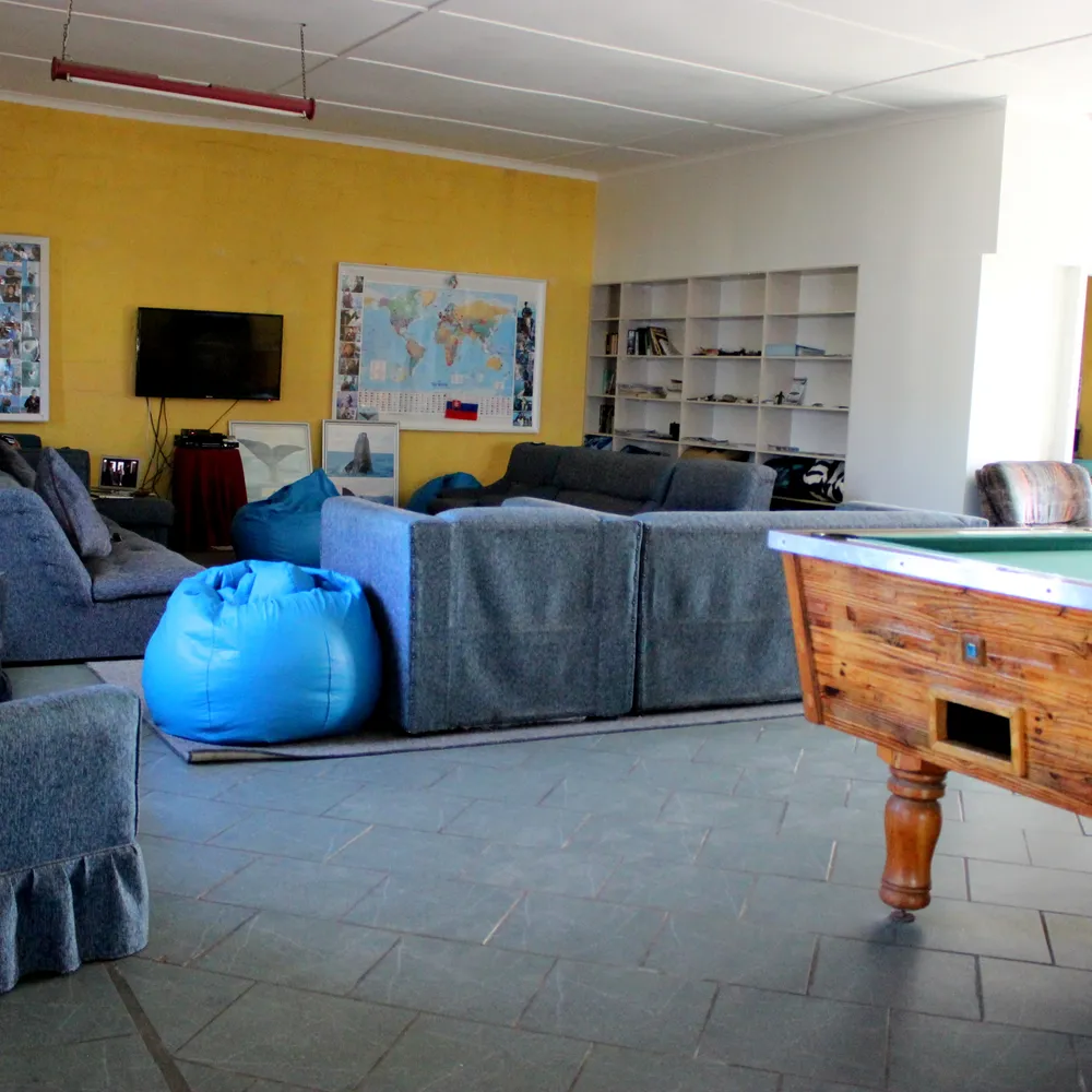 Utöver stugorna finns ett större vardagsrum i huvudbyggnaden som man kan ta del av. Det finns ett biljardbord, TV med DVD-spelare. bussar och ett kök till ditt förfogande. Lodgen har en stor pool, en bar och en trädgård som volontärerna kan använda när det finns tid. .